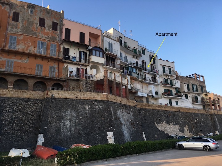 A charming fully furnished apartment in the heart of the medieval borgo antico overlooking the Mediterranean Sea and the Nettuno marina on one side, and the medieval plaza, the front steps of the town's mother church on the other. You won't miss a single event!!