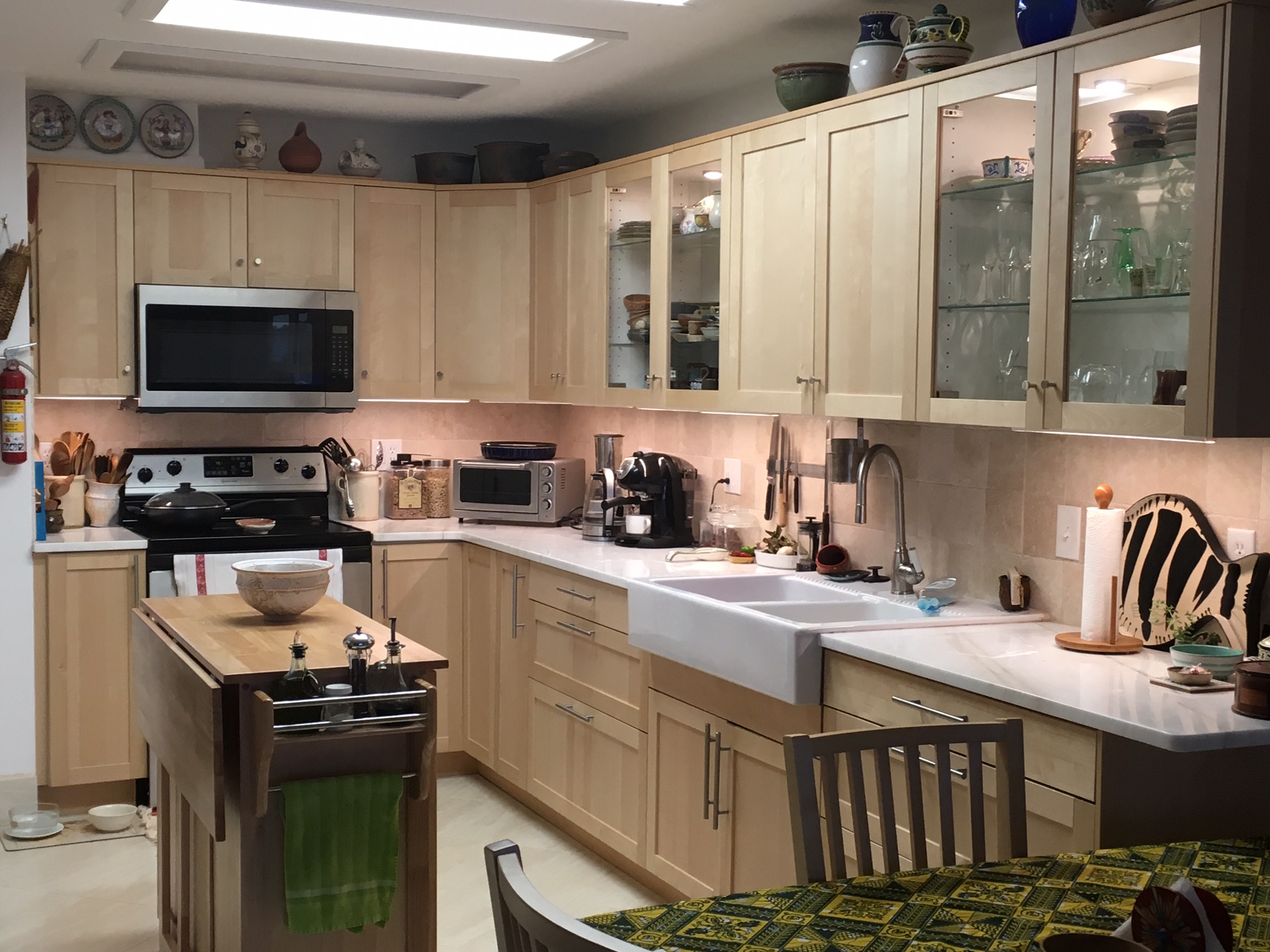 Fully equipped kitchen with ceramic-glass range, microwave, toaster oven, coffeemaker, large refrigerator w/ freezer, ice-maker, etc.